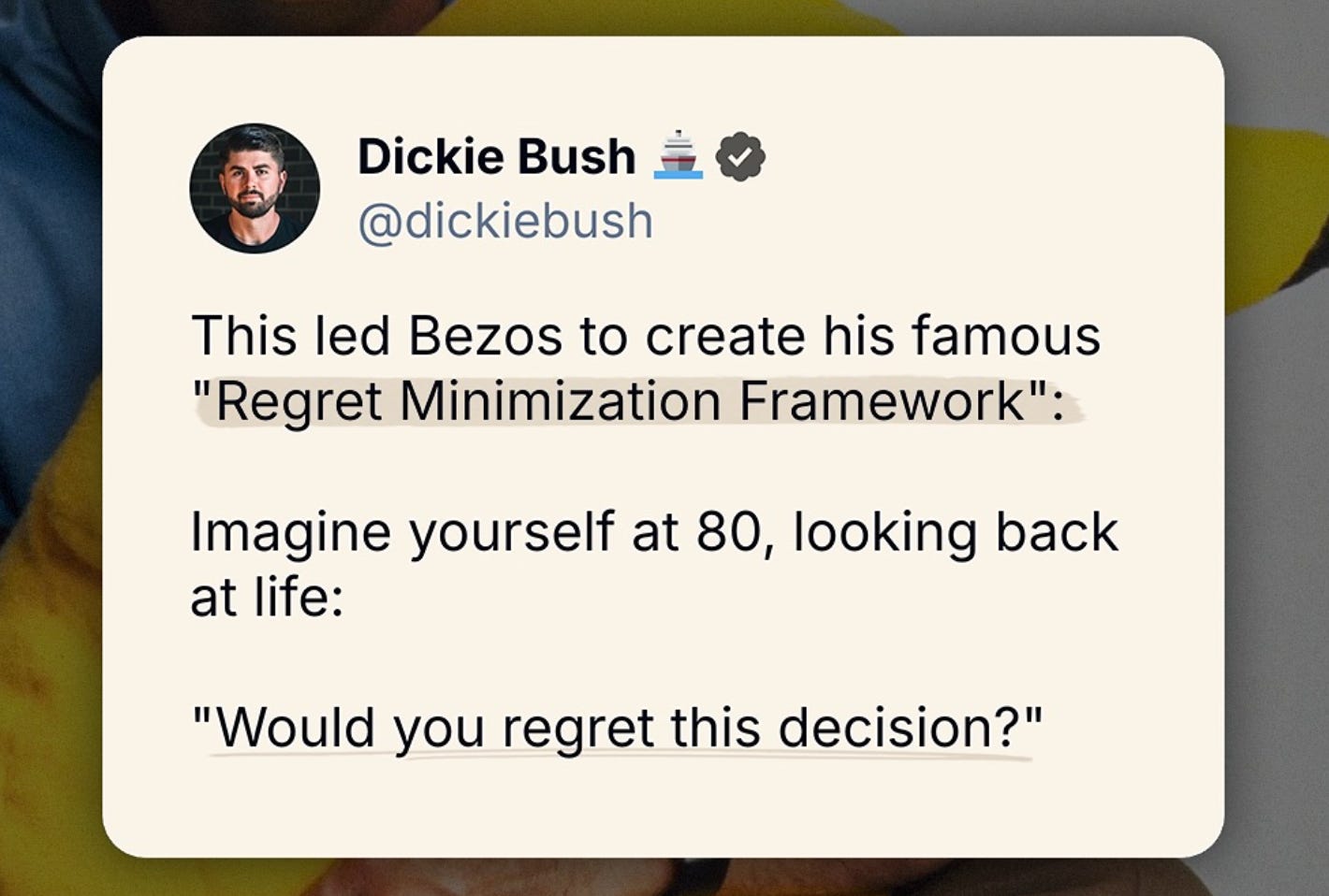 Back to Jeff Bezos. Dickie Bush mentioned him and his Regret